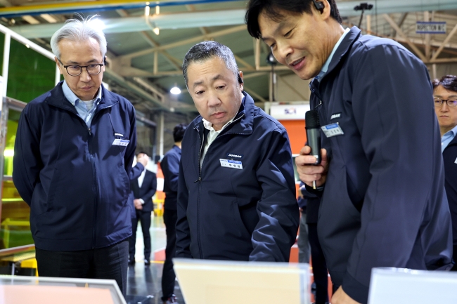 ¹ÚÁ¤¿ø(°¡¿îµ¥) µÎ»ê±×·ì È¸ÀåÀÌ Áö³­ 2¿ù 12ÀÏ ÃæºÏ ÁõÆò ¢ßµÎ»ê ÀüÀÚBG »ç¾÷ÀåÀ» ¹æ¹®ÇØ CCL Á¦Ç° ¶óÀξ÷À» »ìÆìº¸°í ÀÖ´Ù.
